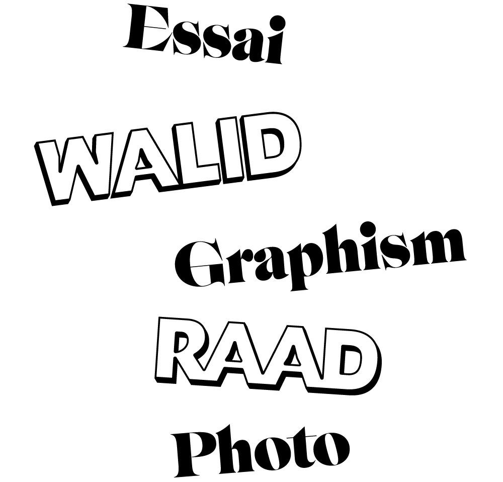 Essais graphique ( layout, typo, drawing, 3d objects ) + custom type “ Walid Raad ” sous forme d’édition digitale réalisée à l’issue d’un workshop avec Walid Raad en 2016.